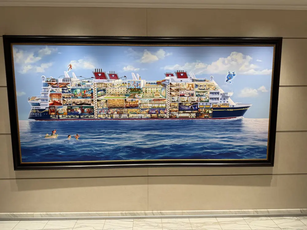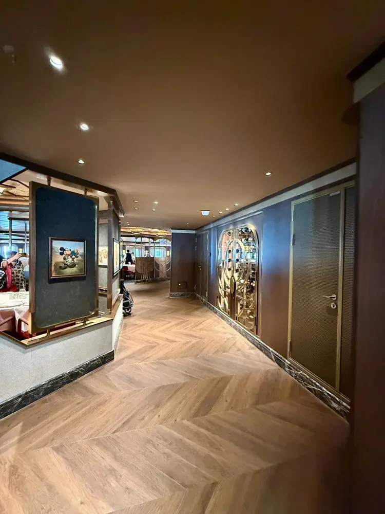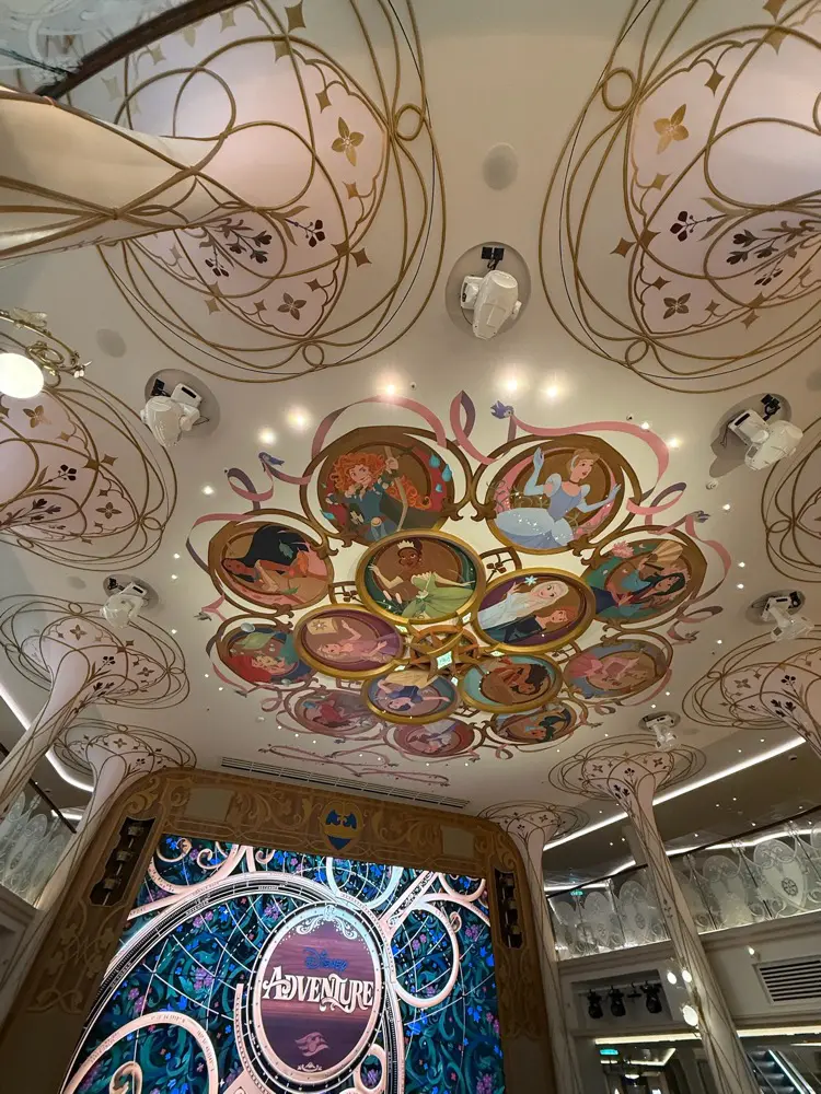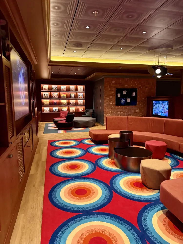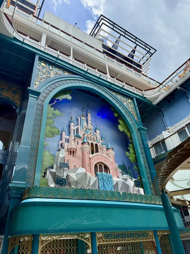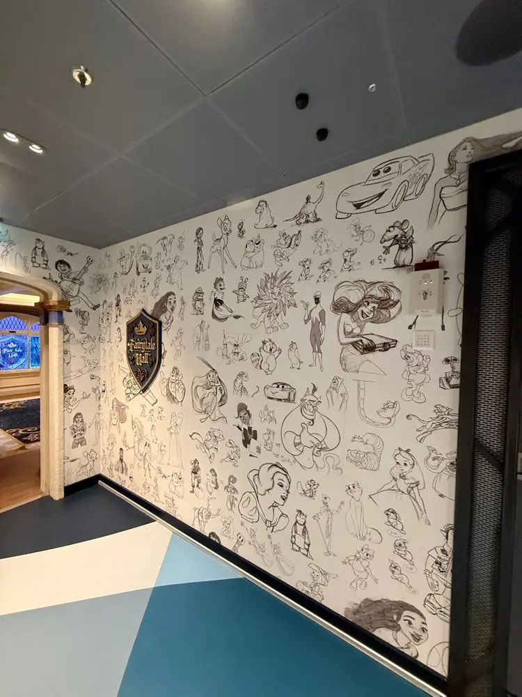 One of the things I want to flag that almost nobody talks about: the corridors and lift areas on this ship are part of the experience. Each deck is themed differently, murals, carpet patterns, artwork, and they connect to the venues on that level. The Monsters Inc. escalator mural above is just one example. It genuinely feels like the theming never stops, even when you’re just walking back to your room.
