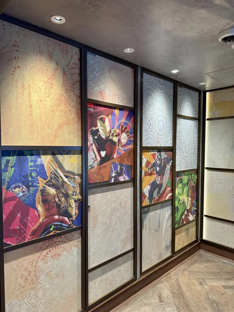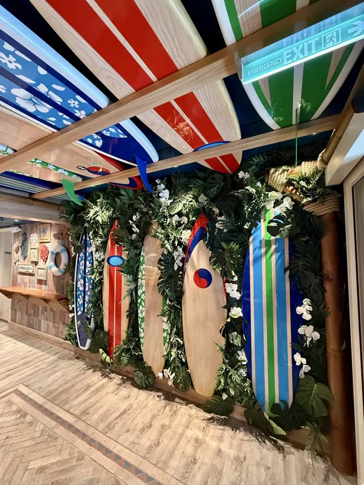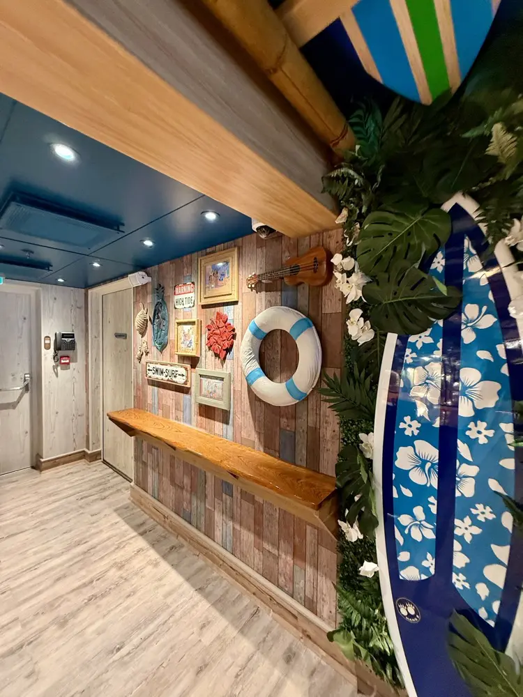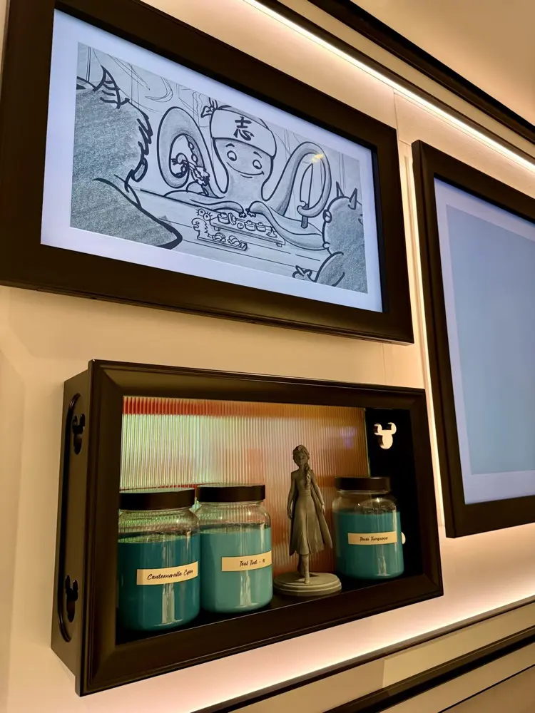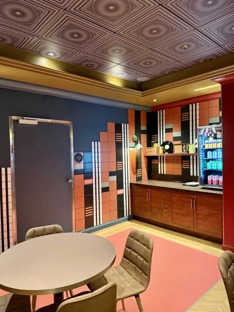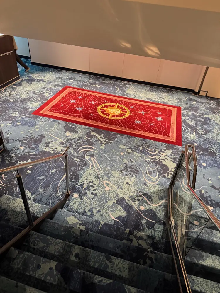One of the things I want to flag that almost nobody talks about: the corridors and lift areas on this ship are part of the experience. Each deck is themed differently, murals, carpet patterns, artwork, and they connect to the venues on that level. The Monsters Inc. escalator mural above is just one example. It genuinely feels like the theming never stops, even when you’re just walking back to your room.