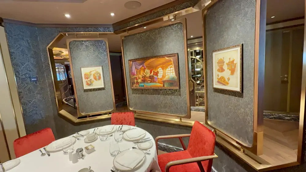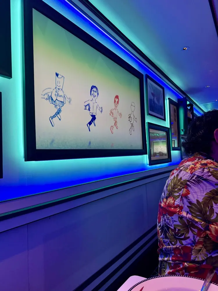 Hollywood Spotlight Club is the standout dining experience on the ship. The gold Hollywood character display cases set the scene, with your favourite Disney characters reimagined as award statuettes.