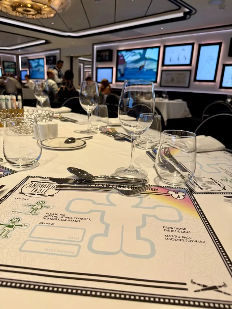 The beloved Disney animation restaurant concept, done here in a clean, contemporary black and white art deco style. Draw your character on the placemat, and Mickey brings it to life on the screens surrounding the dining room. Both Animators Table and Animators Palette run the same menu and concept with slightly different décor.