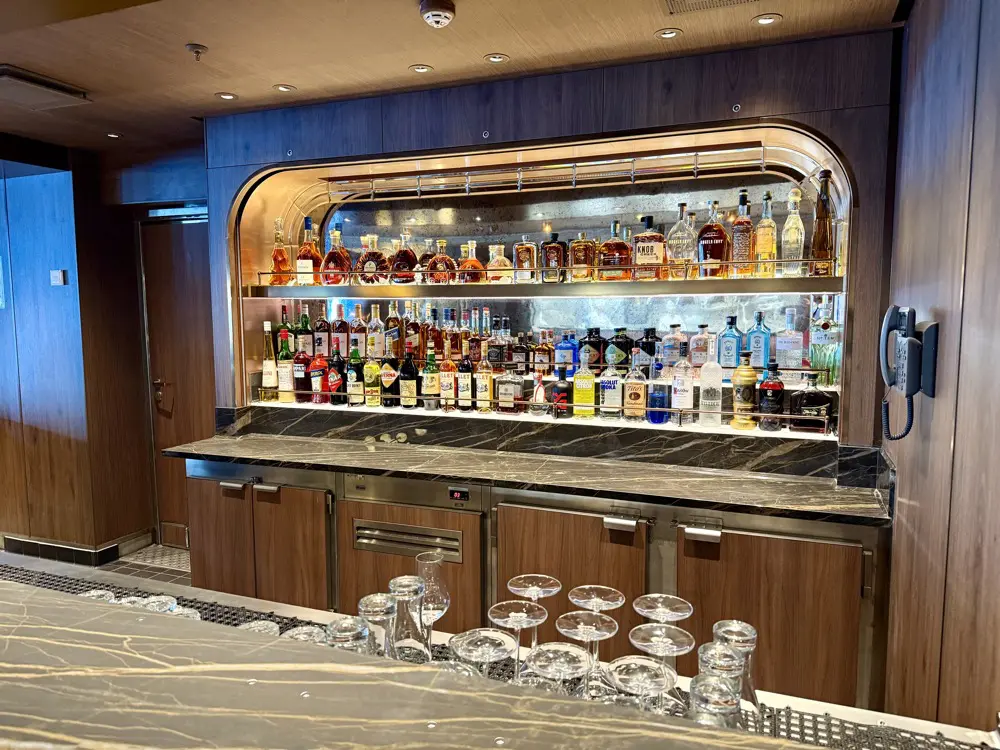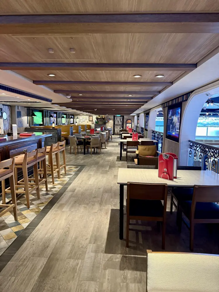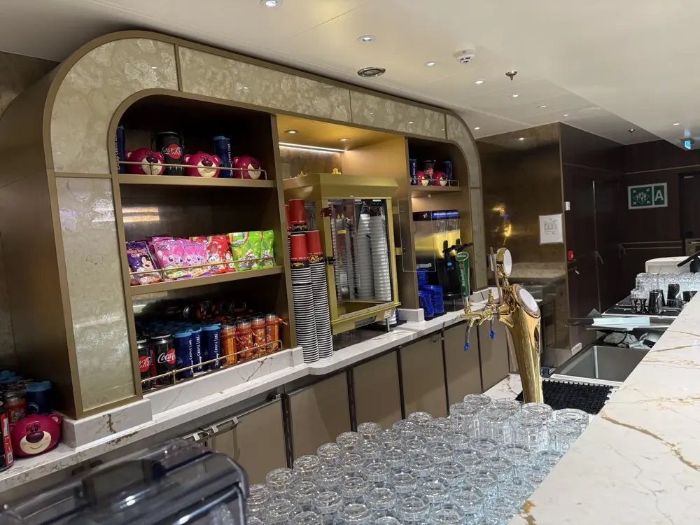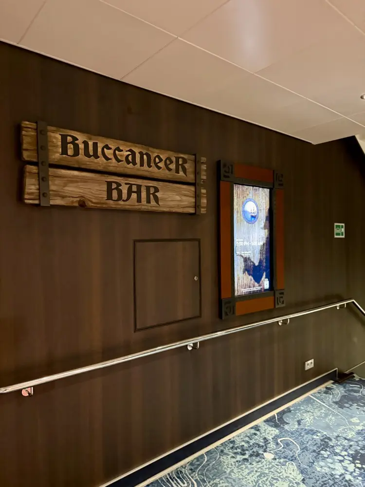 One of the most interesting discoveries on the ship, and genuinely, we almost missed it. The Buccaneer Bar is a pirate-themed bar tucked away in a part of the ship that doesn’t advertise itself. We spotted the wooden sign at the end of a corridor and followed it. Completely worth it. It’s also the venue for the ship’s drinks classes, cocktail making sessions, whiskey tastings and the like — which are worth booking through the Navigator app if you’re into that kind of thing.