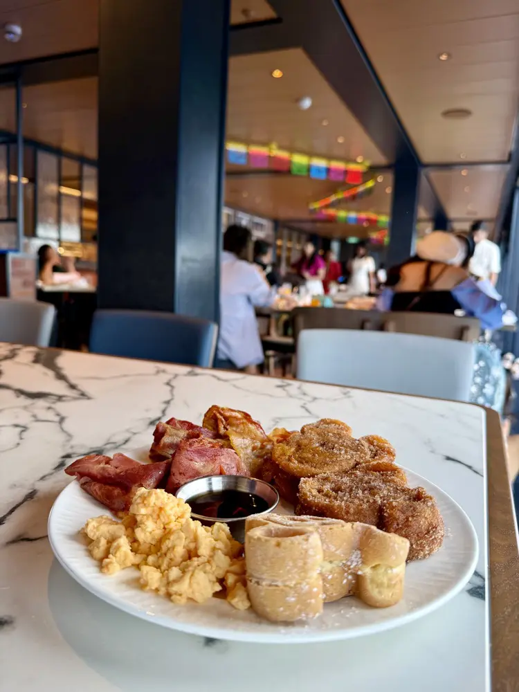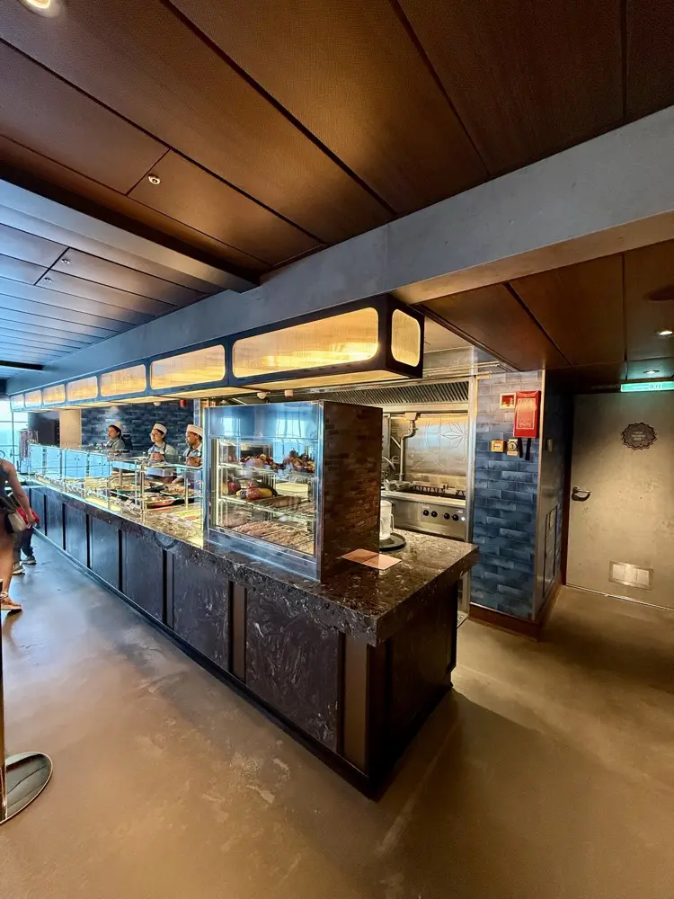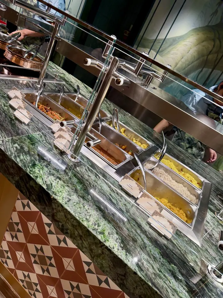 The Pixar Market Restaurant is the ship’s main buffet, serving breakfast, lunch and evening meals across a Pixar-themed space. It’s also worth noting that Enchanted Summer, one of the rotational dining rooms, serves as a buffet venue for lunch, then transforms into a full sit-down rotational restaurant in the evenings. Same space, completely different experience.