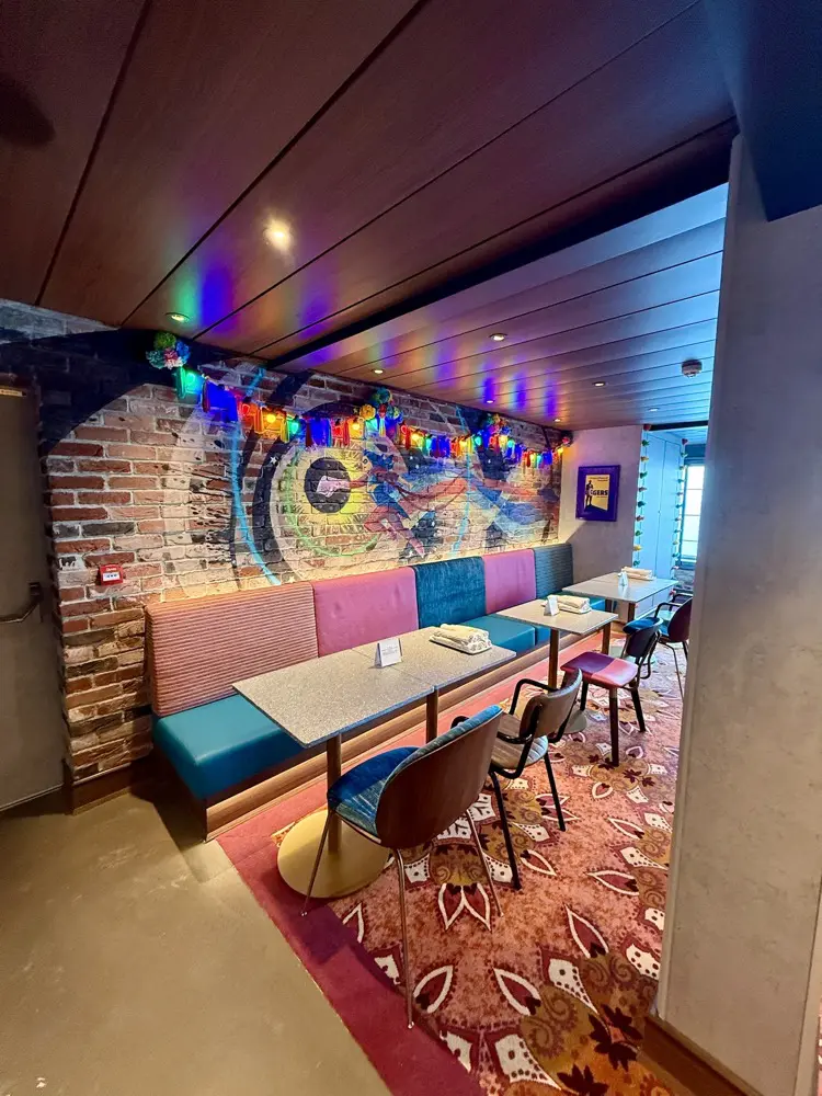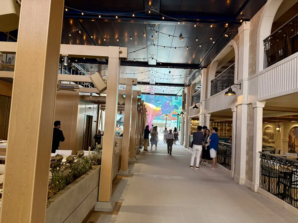 This section of the ship brings together three distinct venues all sharing the same Italian Riviera soul, connected by Luca theming and the smell of something delicious.