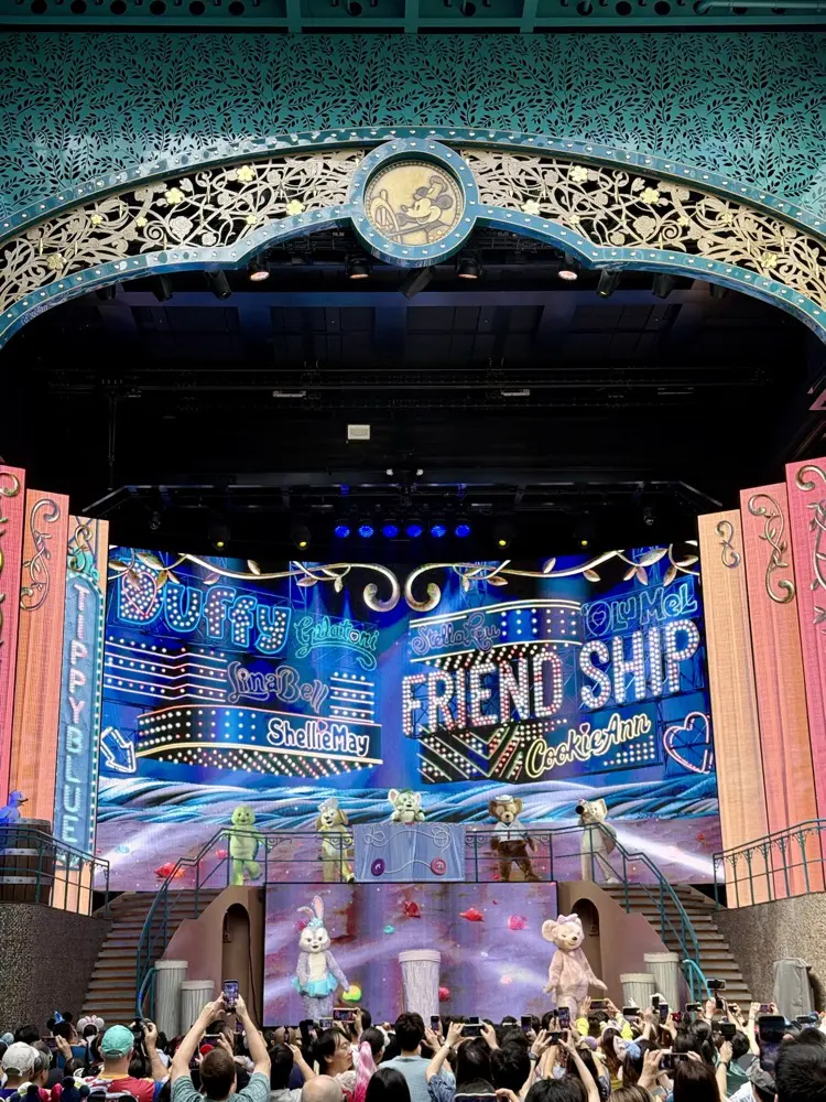 The Imagination Garden stage between shows — the scale and quality of the LED displays is genuinely breathtaking.