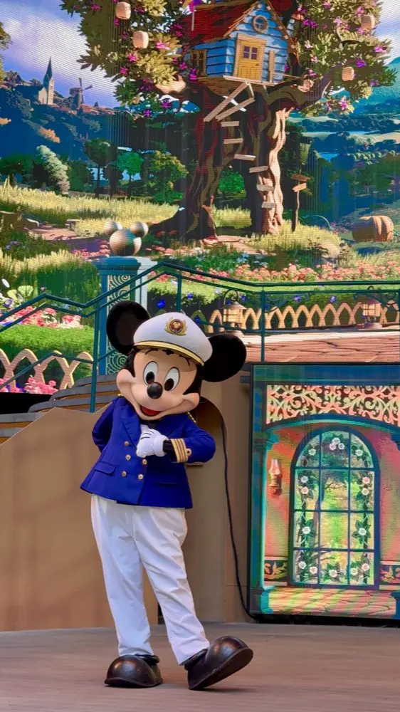 Seas the Adventure — a 30-minute Goofy and Minnie Mouse show already familiar from the Wish class. Funny, energetic, and a brilliant start to your first evening.