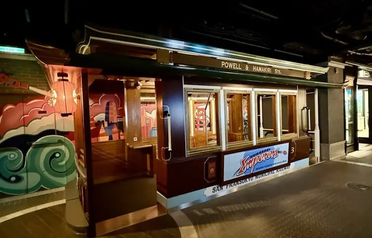 Embedded in the alley, there’s even a recreation of the San Fransokyo Municipal Railway cable car, which can be used as seating area.