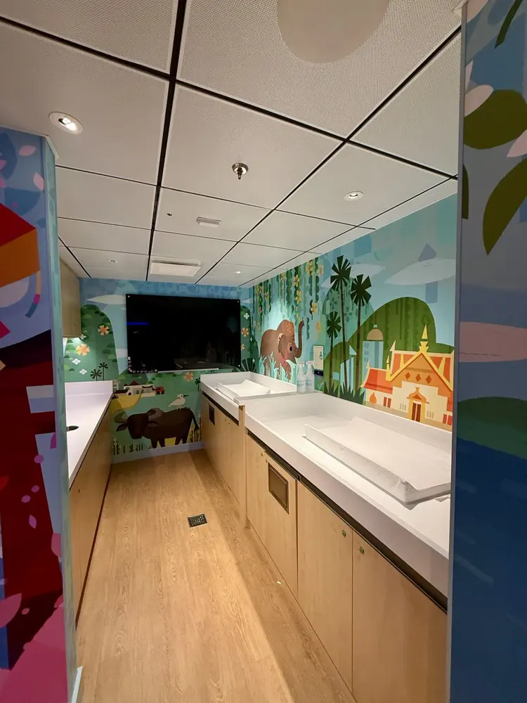 You can also find a dedicated self-service laundrette on board — Fairytale Fresh Laundry — so if you need to freshen up some clothes mid-trip or just press a shirt before dinner, the option’s there. It has an adorable enchanted forest theme, which is 100% overkill for a launderette, but so much more welcoming than the gloomy afterthoughts tucked away on other ships. Only Disney would make a washing machine feel magical.