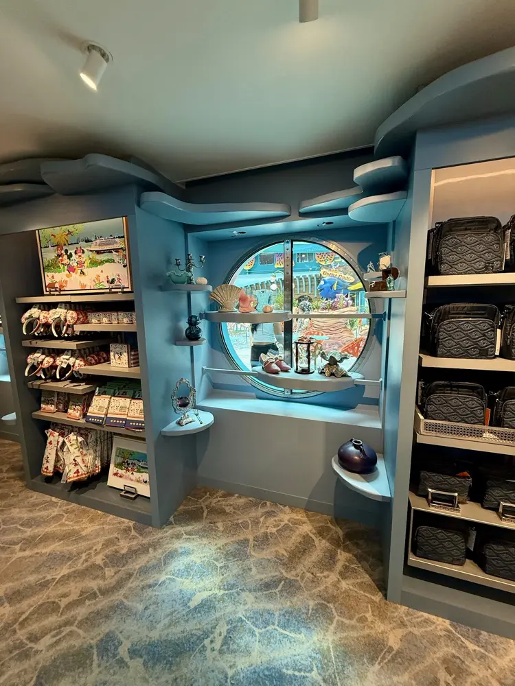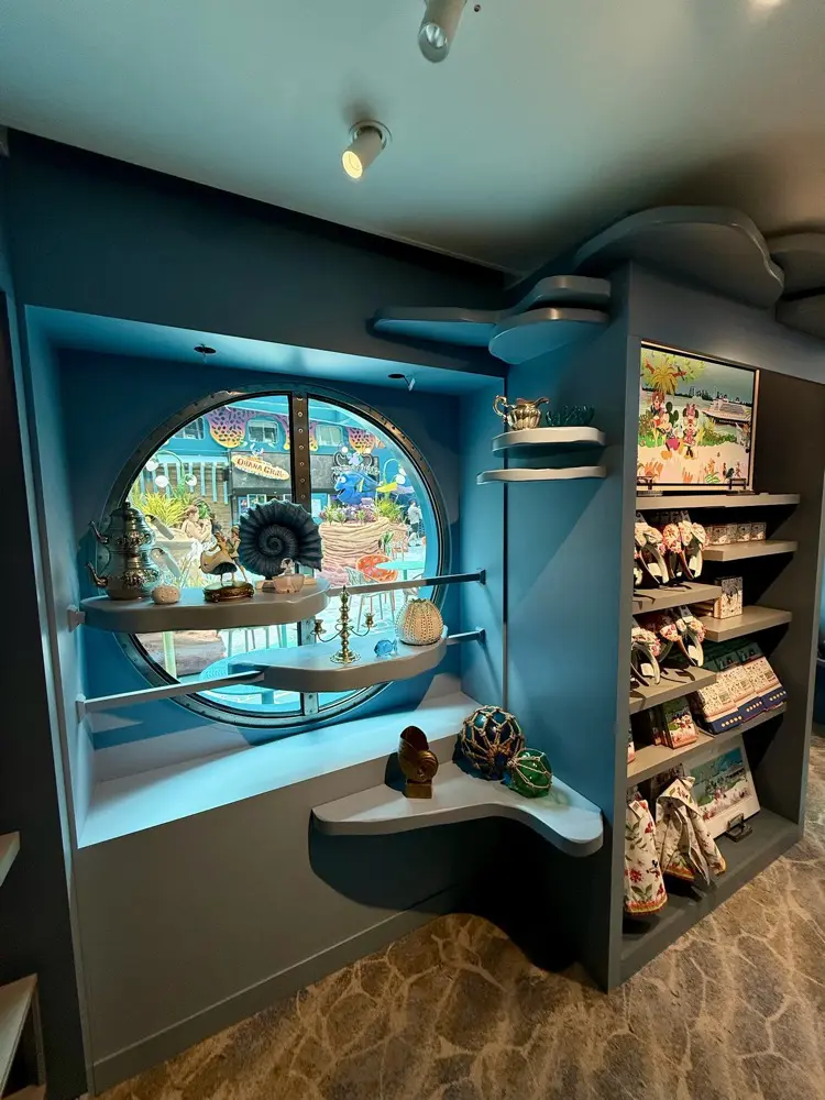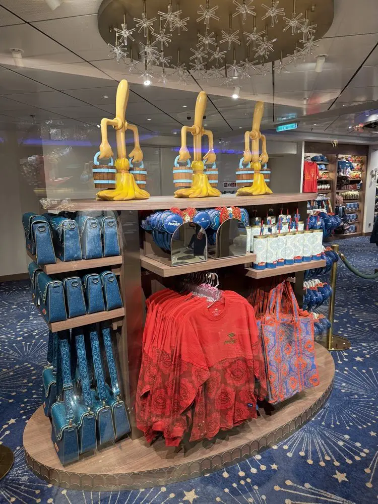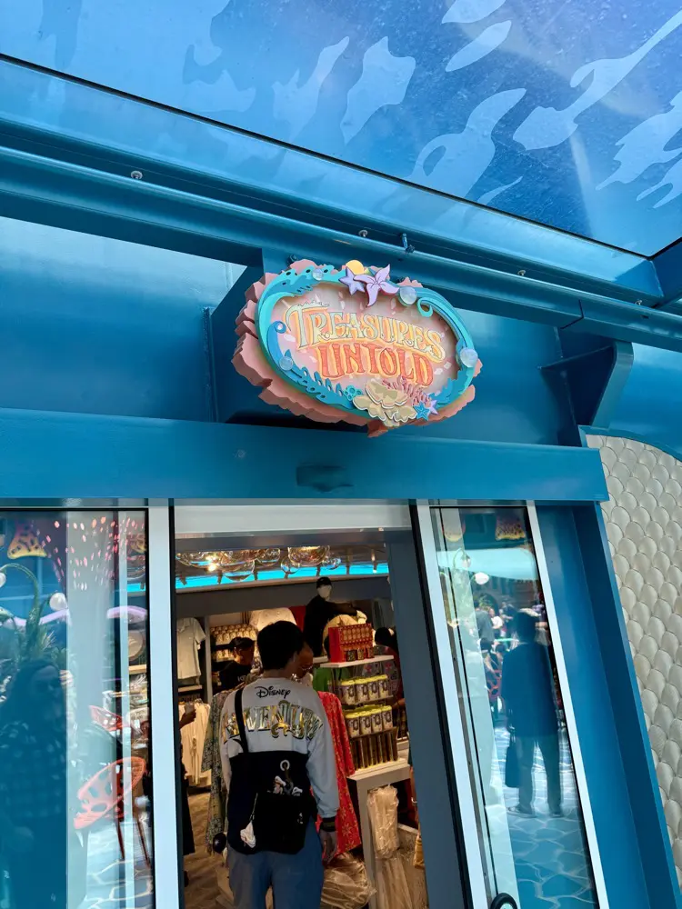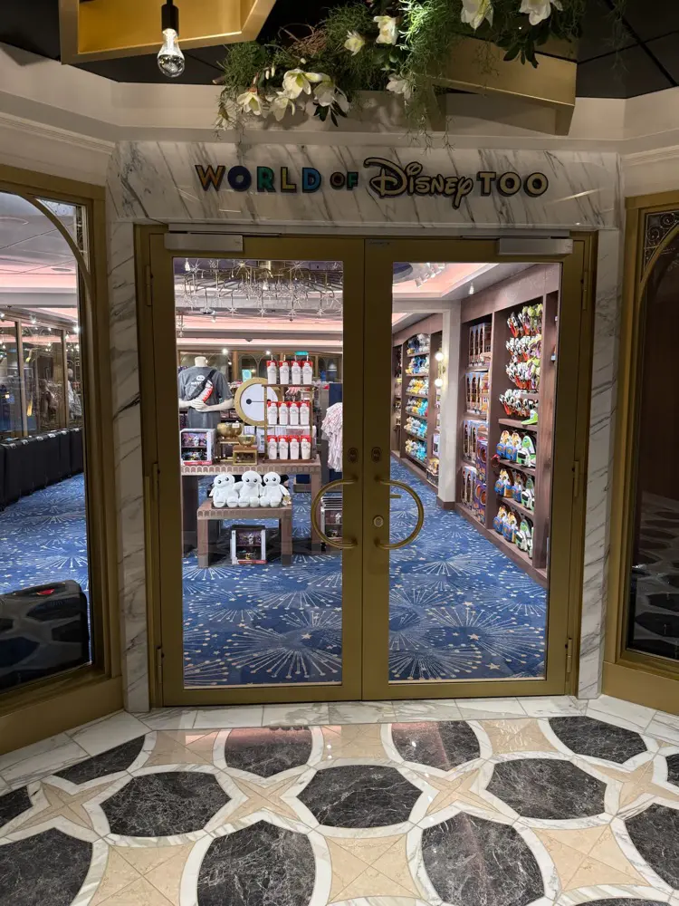 The ship isn’t primarily a retail destination, but there’s a solid offering spread across the ship. World of Disney is the main shopping area — it actually comes in two versions (World of Disney and World of Disney Too), located at different points on the ship and selling broadly the same merchandise. Good for your Disney essentials and souvenirs.