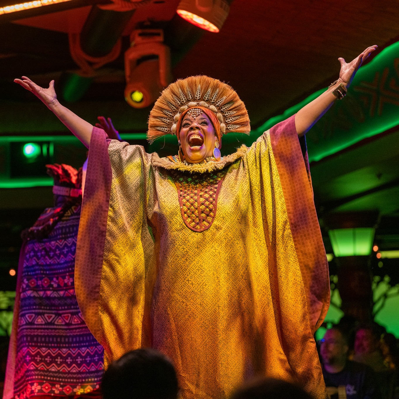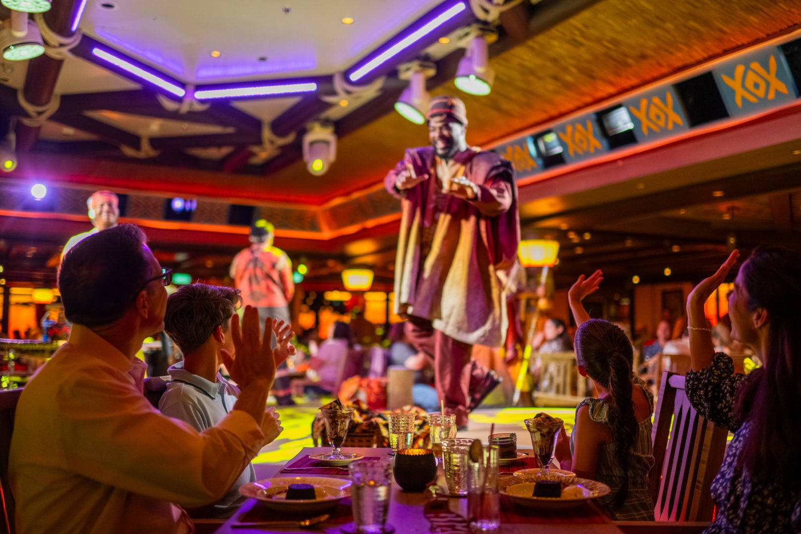 The magic happens in the details. The restaurant’s design mirrors the Pride Lands themselves, with warm, earthy tones and authentic African-inspired décor that makes you feel like you’re dining under the endless African sky. But it’s the intimate performer interactions that truly set this experience apart: these aren’t distant stage performances, but up-close encounters where Timon might crack jokes at your table while Rafiki shares wisdom between courses.