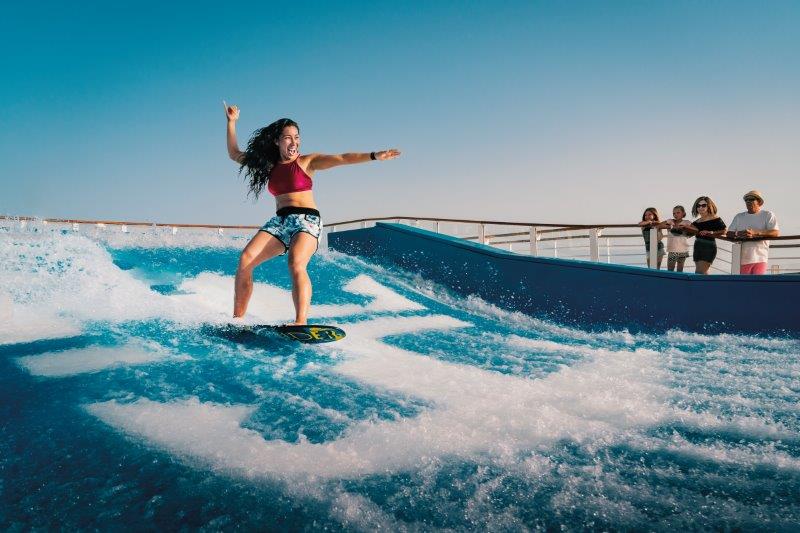 Beyond the theatres, there’s a strong focus on active experiences. Surf simulators, skydiving simulators, zip lines, climbing walls, and multi-level waterparks mean there’s always something happening. For guests who like a sense of energy and choice, this is where Royal Caribbean really stands out.